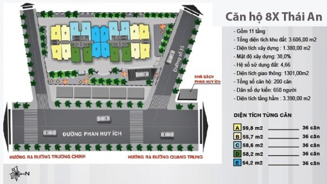 Căn hộ 8X Thái An - Phan Huy Ích cao 11 tầng gồm tầng hầm với 180 căn hộ