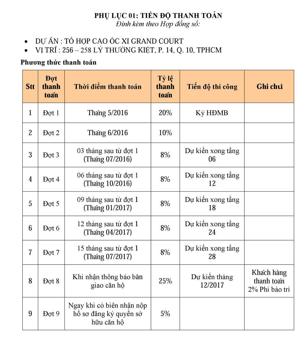 CHÍNH SÁCH BÁN HÀNG & GIÁ CĂN HỘ XI GRAND COURT